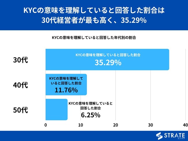 【KYCの意味を理解していると回答した割合は30代経営者が最も高く、35.29%】