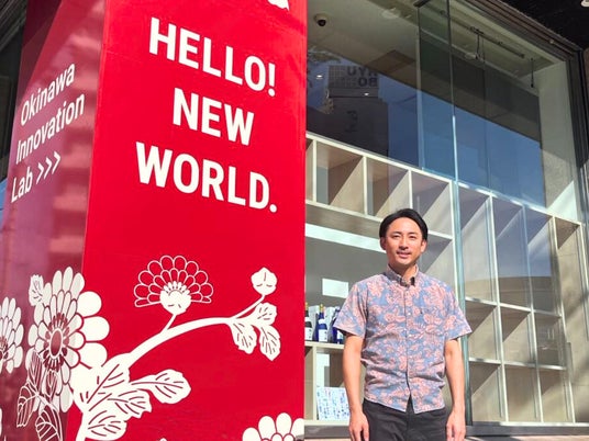 沖縄銀行本店1F「Okinawa Inovation Lab」前で