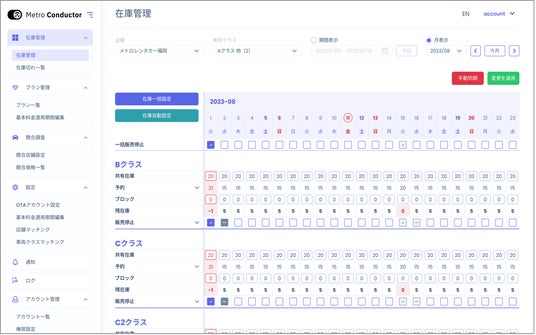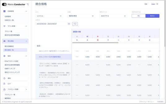 『メトロコンダクター』は、複数のOTAの予約サイトの在庫の一括管理や競合の販売価格調査といった、事業運営の効率化や売上の最大化をサポートするレンタカー事業者向けシステムです。