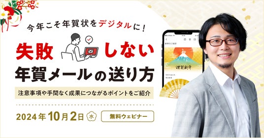 シナジーマーケティング株式会社(所在地:大阪市北区、代表:奥平 博史、以下当社)は、本年も当社クラウド型CRMシステム「Synergy!(読み方:シナジー)」を利用した年賀メールパッケージの提供を開始しました。本パッケージは2024年12月20日までの新規ご契約者限定で、Synergy!導入の初期費用148,000円(税別)(※1)を0円にてご提供します。また、10月2日(水)AM11時から失敗しない年賀メールに関するオンラインウェビナーも実施します。会社で年賀状送付を担当されている方などのご参加をお待ちしています。Synergy!年賀メールパッケージ 5つのメリット- はがき代、印刷代、郵送代などの郵送コストがかからない