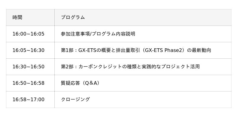 ネイチャーベースのカーボンクレジット創出販売事業を展開するGreen Carbon株式会社(代表取締役:大北潤、以下:Green Carbon(読み;グリーンカーボン))は、GXリーグ事務局を務める、株式会社野村総合研究所(代表取締役社長:柳澤 花芽、以下:NRI)をゲストにお招きし、「いよいよ本格稼働へ!GX-ETS徹底解説(以下、本セミナー)」を7月18日(金)16:00~17:00にオンラインで開催することをお知らせします。