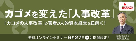 今回のスペシャルセミナーでは、カゴメ株式会社 常務執行役員の有沢正人氏をお招きし、真の「人的資本経営」実現を目指すカゴメの人事戦略について、具体的な取り組み内容をお話しいただきます。