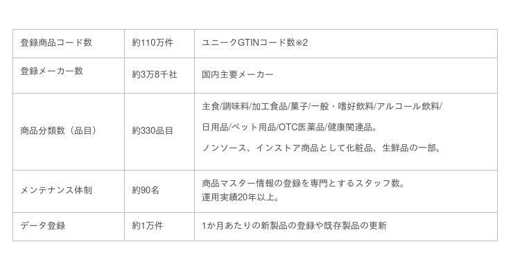 ※1 商品マスター情報とは:「どんな商品か」を裏付ける正しい商品情報を指します。JANコードベースで「どのような商品か」の情報がまとまっており、データを利活用するためは欠かせない情報です