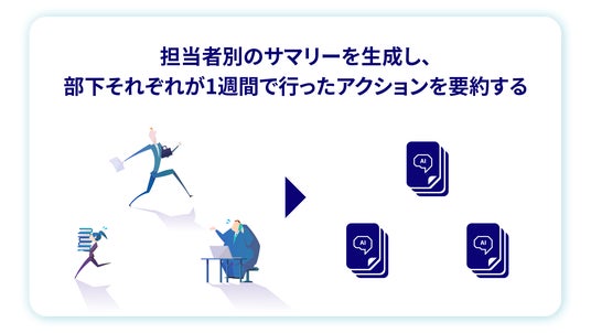 - 今後のアップデートで担当者ごとにサマリーを作成することが可能になり、マネージャーからメンバーへのサポートをさらに強化することにつながります。