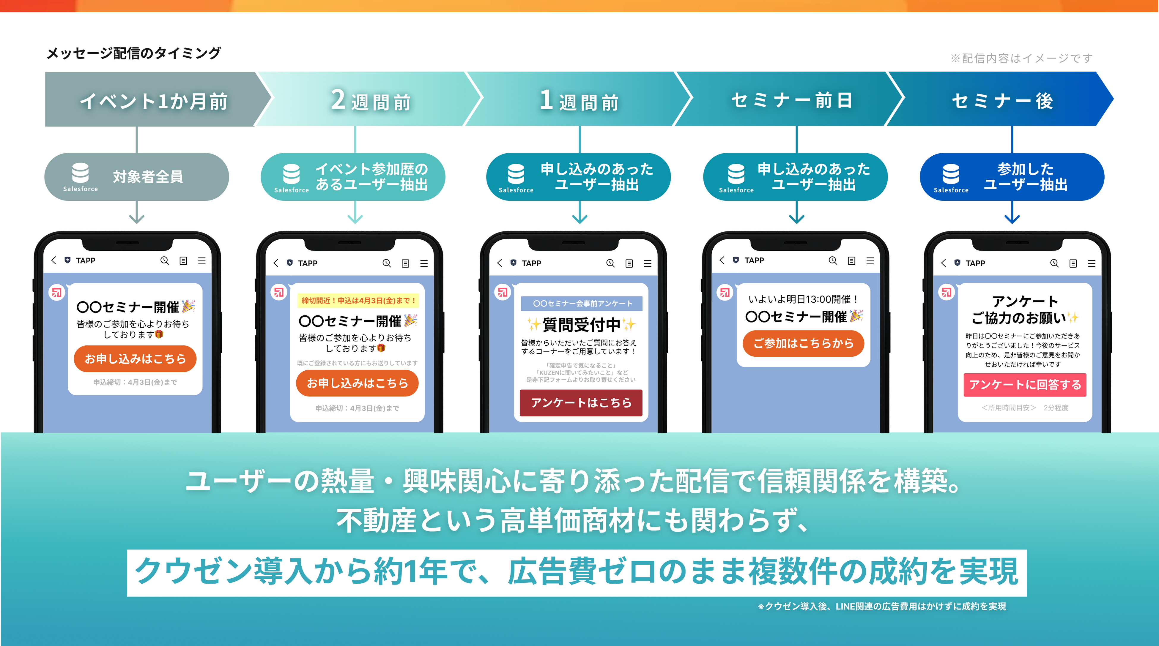 導入による成果1.「参加したい人」に絞ったセグメント配信で信頼を獲得し、広告費ゼロで複数件の成約(LTV向上)を実現