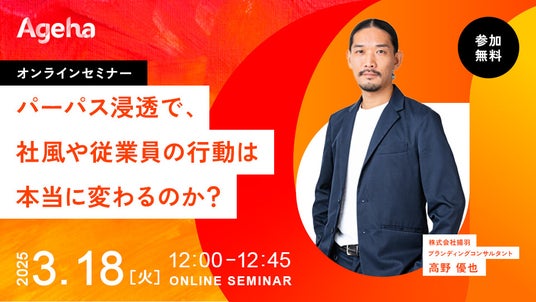 コーポレートブランディング支援を行う株式会社揚羽(東京都中央区 代表取締役社長:湊 剛宏 証券コード:9330)は、2025年3月18日(火)に「パーパス浸透で、社風や従業員の行動は本当に変わるのか?」と題したオンラインセミナーを開催します。