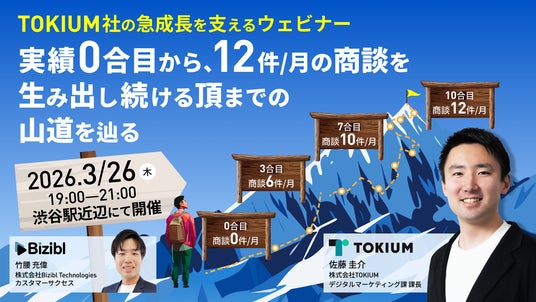 「TOKIUM社の急成長を支えるウェビナー 実績 0 合目から、12件/月商談を生み出し続ける頂までの山道を辿る」を、2026年3月26日(木)にTIME SHARING 渋谷ワールド宇田川ビル 9Aにて開催いたします。