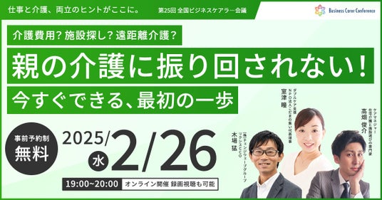株式会社チェンジウェーブグループ(本社:東京都港区、代表取締役社長:佐々木裕子)は、2025年2月26日(水)に、オンラインセミナー『全国ビジネスケアラー会議 仕事と介護、両立のヒントがここに。』を開催致します。