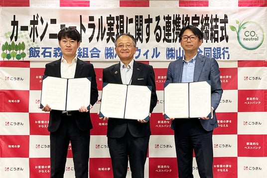日本全国47都道府県のカーボンニュートラル実現を目指す株式会社バイウィル(本社:東京都中央区、代表取締役社長:下村 雄一郎、以下「バイウィル」)は、飯石森林組合(本所:島根県雲南市、代表理事組合長:木村 守登)、株式会社山陰合同銀行(本店:島根県松江市、取締役頭取:山崎 徹、以下「山陰合同銀行」)との3者で、地域のカーボンニュートラルおよびサーキュラーエコノミーの実現に寄与することを目的として、J-クレジット(*1)を活用したカーボンニュートラルに関する連携協定を締結しました。