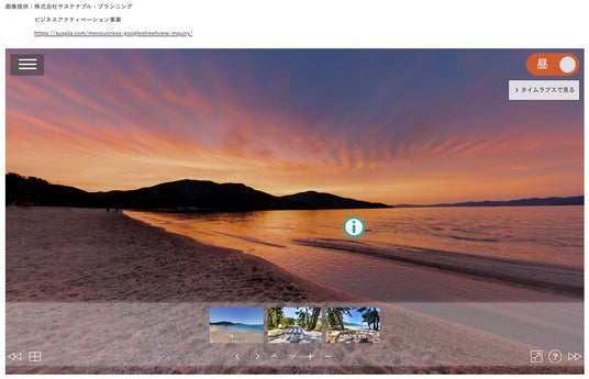 実際に道を歩いているかのように、また室内にいるかのように、360度のパノラマ画像でバーチャル体験できるサービスです。