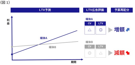 株式会社博報堂DYメディアパートナーズ(本社:東京都港区、代表取締役社長:矢嶋弘毅、以下 博報堂DYメディアパートナーズ)は、顧客が一定期間内に企業にもたらす収益「ライフタイムバリュー(以下、LTV)」を機械学習で予測し、デジタル広告の予算配分を最適化する機能を”Digital AaaS”から提供を開始します。短期的な顧客獲得数の最大化を目指すコンバージョン(以下、CV)起点の広告運用と異なり、本機能では広告主の継続的な収益増加に貢献するLTV起点の広告運用を実現可能にします。