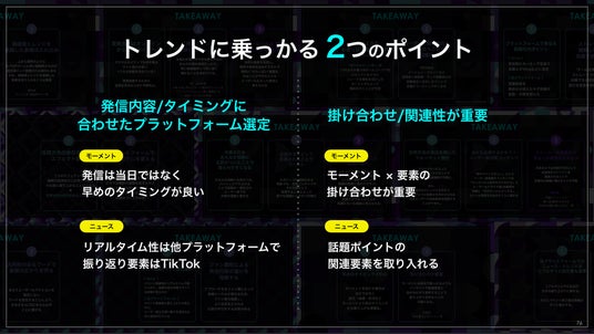 その一方で、TikTokがテキストに依存しない非言語でのコミュニケーションが中心のプラットフォームであるがゆえ、TikTokでのトレンド形成の実態が把握しきれていませんでした。