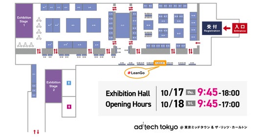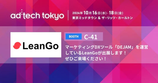 株式会社LeanGo (本社:東京都目黒区、代表取締役:平井 翔吏、以下 弊社) は、Comexposium Japan(コムエクスポジ アム・ジャパン)株式会社(本社:東京都港区、代表取締役社長:古市優子)が開催する、マーケティング国際カンファレンス「ad:tech tokyo(アドテック東京)」に、ブース出展することをお知らせいたします。なお、ブース出展期間は2024月10月17日~18日で、開催場所は東京ミッドダウン&ザ・リッツ・カールトン東京です。