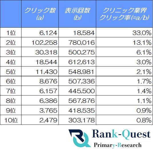 クリニック業界では2位~5位のクリック率が他業界と比べて非常に高いことが明らかとなりました。