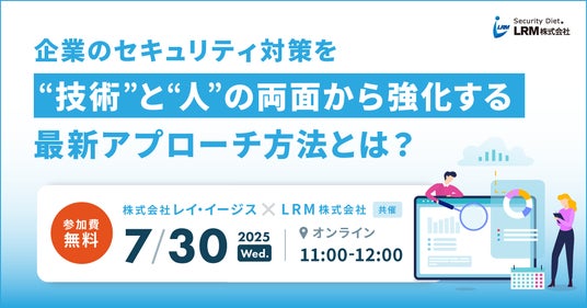 LRM株式会社(本社:兵庫県神戸市、代表取締役CEO:幸松哲也)、株式会社レイ・イージス・ジャパン(本社:東京都新宿区、代表取締役:青木 登)は、2025年7月30日(水)11時から、企業のセキュリティ対策を“技術”と“人”の両面から強化する最新アプローチについて解説するセミナーを無料開催します。Zoomでお気軽にご視聴いただけますので、ぜひご参加ください。