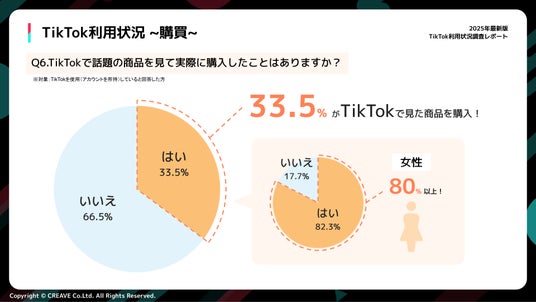 クリエイターとの共創を通じて企業のマーケティング課題を解決する、株式会社CREAVE(本社:東京都千代田区、代表取締役社長:中村真奈、以下 CREAVE)は、TikTokユーザーの投稿・シェア・購買行動を調査した「2025年最新版 TikTok利用状況調査レポート」を1月21日(火)に公開しました。