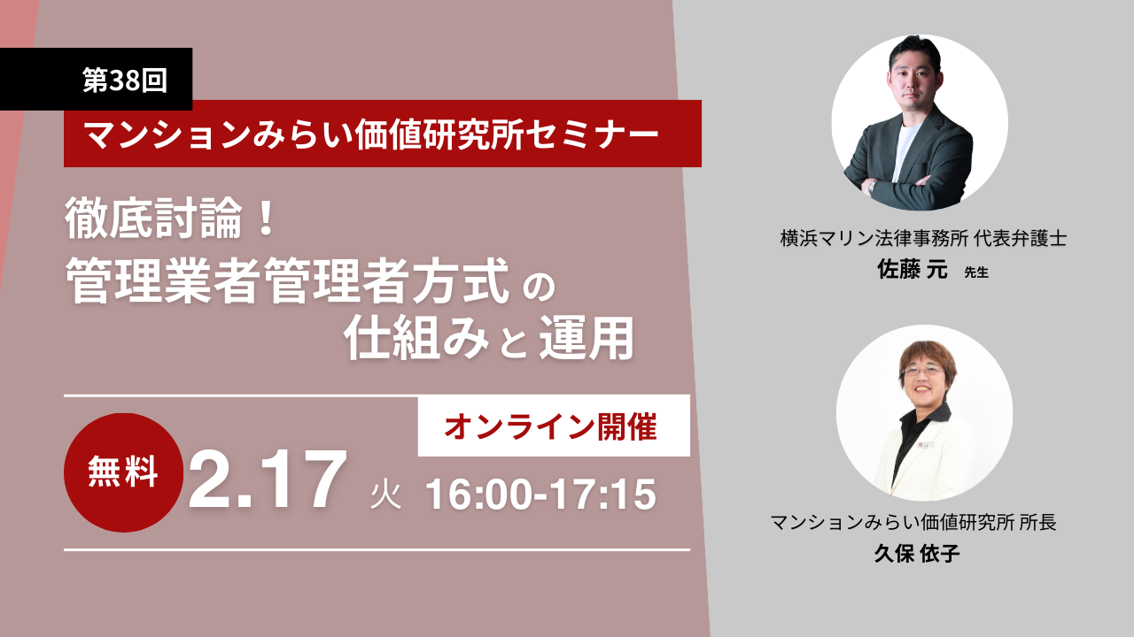 『徹底討論!管理業者管理者方式の仕組みと運用』を、2026年2月17日(火)に配信いたします。