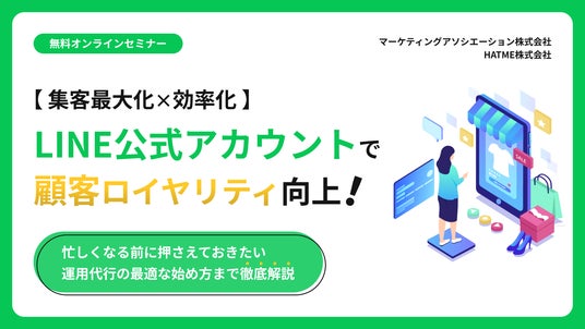 マーケティングアソシエーション株式会社の子会社であるHATME株式会社(本社:東京都台東区 代表取締役:中園広和、以下当社)は2025年2月17日(月)に、ウェブセミナー「【集客最大化×効率化】LINE公式アカウントで顧客ロイヤリティ向上!忙しくなる前に押さえておきたい運用代行の最適な始め方まで徹底解説」を、開催いたします。