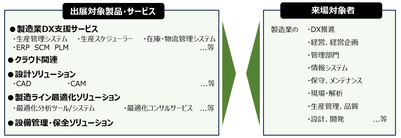 製造業の業務効率化・DX推進のための商談型展示会として、以下の企業を誘致する。