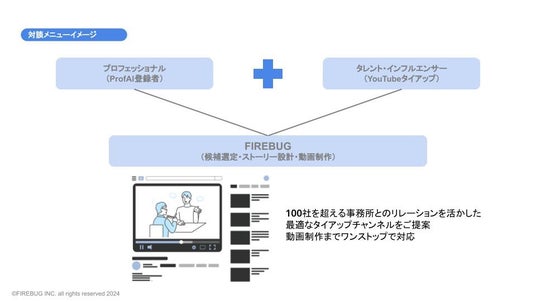FIREBUGはこれまで、「ProfAI」を通じてさまざまなプロフェッショナルのメディアへの出演等の機会を後押ししてきており、本取り組みの中で、「同業種や近しい経験、体験を持つタレントさんと対談したい」というリクエストを多くいただいていることから、今回本メニューを追加します。