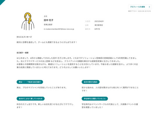 個人のプロフィールやツールの利用履歴を可視化し、チーム内の相互理解とエンゲージメント向上を促進