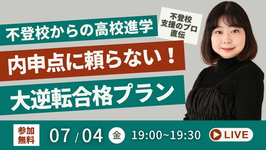 2025年7月4日(金)19:00~19:30、キズキ共育塾(※)は「不登校からの高校進学」に悩む保護者様を対象に、無料のオンラインイベントを開催します。