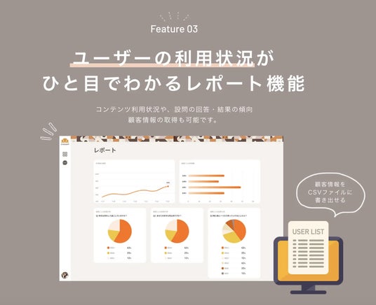 ガチャや診断コンテンツの利用者など、ユーザーデータをレポートで閲覧できます。