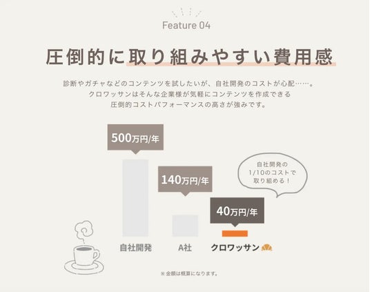 クロワッサンはそのような企業様が気軽にコンテンツを作成できるよう、圧倒的なコストパフォーマンスの高さを実現いたしました。