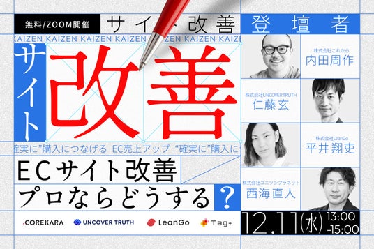 株式会社LeanGo(本社:東京都目黒区、代表取締役:平井 翔吏、以下 弊社)は、株式会社これから(所在地:東京都新宿区、代表取締役:今泉雄介)が主催するオンラインセミナー『ECサイト改善、プロならどうする?』に登壇することをお知らせします。