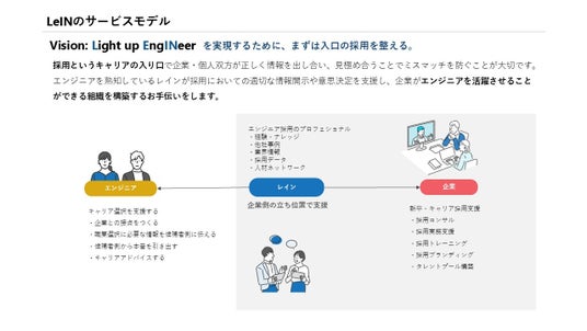 レインは、2019年の設立以来「Light up EngINeer」をビジョンに掲げて「エンジニアが輝ける社会」の実現を目指しており、エンジニアやDX人材を採用するエンタープライズ企業やスタートアップ企業などに対して、採用コンサルティングや採用業務代行(RPO)などのサービスを提供しています。エンジニア採用経験者を中心に提供される質の高いサービスが顧客から高く評価され、創業以来増収増益を続けております。また、創業時にMicrosoftグループのLinkedIn社のオフィシャルパートナー企業になり、ビジネスSNSであるLinkedInを使用した採用支援にも強みを持っています。