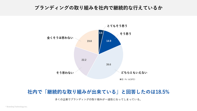 この調査から、社内で「継続的な取り組みが出来ている」と回答したのは18.5%に留まり、多くの企業ではブランディングが一過性になっていることが分かりました。
