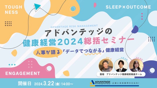 株式会社アドバンテッジリスクマネジメントは、2024年3月22日(金)に健康経営の実務担当者や責任者の方々を対象としたWebセミナー「アドバンテッジの健康経営2024総括セミナー」を開催いたします。