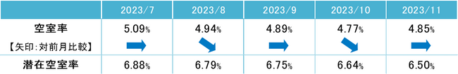 全規模ビル 空室率&潜在空室率:潜在空室率 5ヵ月連続で低下 オフィス需給は活発な状況