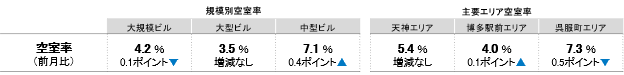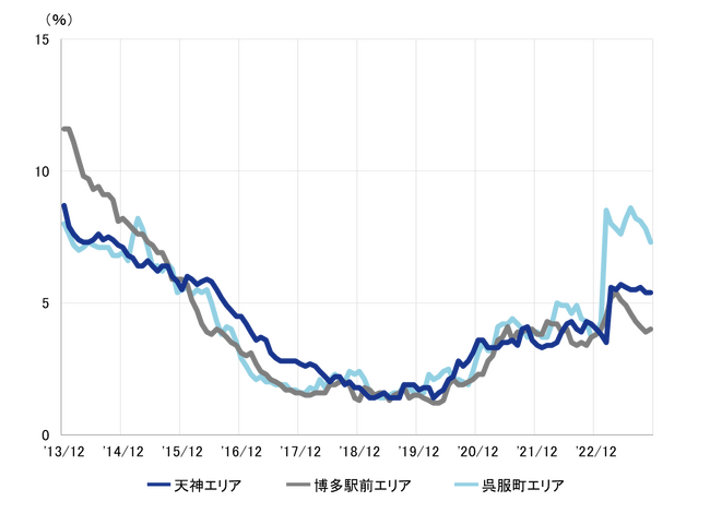 全規模ビル 主要エリア 空室率:「呉服町」4ヵ月連続で低下し、7%台前半へ