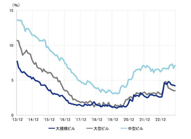 規模別 空室率:「中型」再び上昇し、7%台へ
