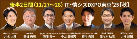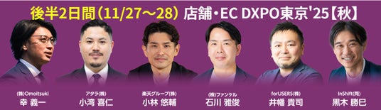 後半開催の営業・マーケ/IT・情シス/店舗・EC DXPO東京'25【秋】では、『無敗営業』『営業の科学』等の著者として知られるTORiX(株) 高橋浩一氏、ノーコード開発の普及活動を行う(一社)ノーコード推進協会 中山五輪男氏、通信販売の戦略策定や顧客育成を推進する(株)ファンケル 石川雅俊氏が登壇。