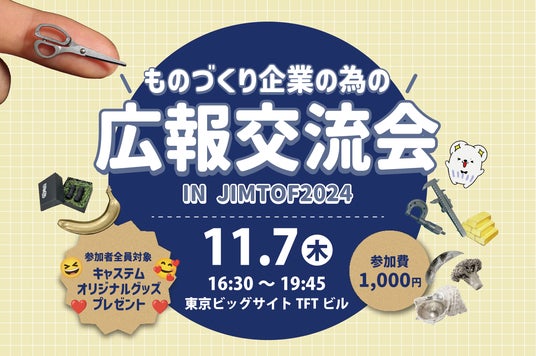 広報交流会のお知らせ11月7日(木)には東京ビッグサイト駅直結のTFTビル内にて広報担当者向けの交流会【ものづくり企業のための広報交流会】を開催いたします!