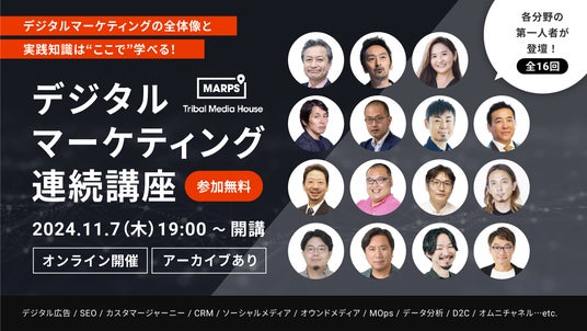 2024年11月に、より実践的なデジタルマーケティングの知見を包括的に提供するため、『デジタルマーケティング連続講座 by MARPS(全16講座)』を開講いたします。