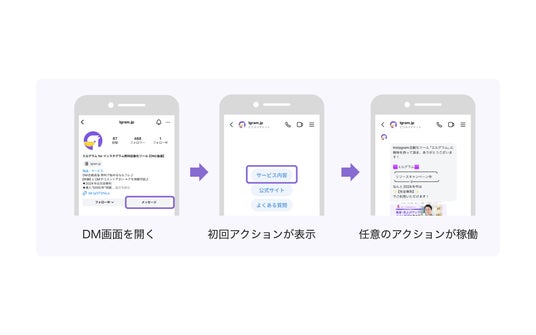 株式会社ミショナが提供するInstagram(インスタ)運用システム「エルグラム」で、ユーザーとの初DM時に公式HPへの誘導・クーポン配布・アンケートの実施などができるメニューボタンを設定可能に。
