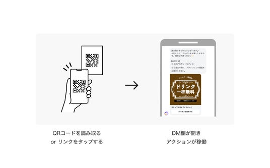 ダイレクトアクション機能は、あらかじめ作成したリンクやQRコードをユーザーが読み取った時に、DM画面を開きアクションを稼働させる機能です。