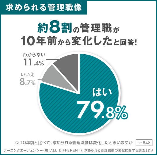累計13,000社420万人以上の組織開発・人材育成を支援するALL DIFFERENT(オールディファレント)株式会社(所在地:東京都千代田区 代表取締役社長:眞崎大輔)および人と組織の未来創りに関する調査・研究を行うラーニングイノベーション総合研究所は、2024年5月20日~7月17日、当社の管理職向け研修の受講者415名を対象に「管理職意識調査」を行いました。本レポートでは、管理職の成長や努力に焦点を当てた結果を公表します。