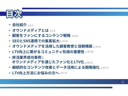 株式会社ベクトル(本社:東京都港区、代表取締役会長兼社長:西江 肇司、東証プライム:6058)の子会社であるOwned株式会社(東京都品川区、代表取締役社長、石井翔、以下「当社」)は、終活業界向けに「ファン化&LTV向上を実現するオウンドメディア活用ガイド」の2024年11月版(全47ページ)を無料公開いたしました。