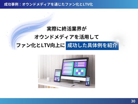 終活業界の成功事例を通じて、顧客との関係を築き、維持できるオウンドメディアの活用法ついて紹介しています。