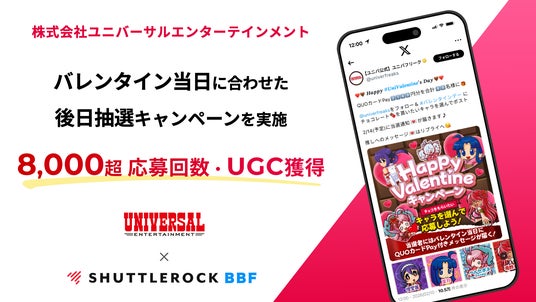 【 キャンペーンポスト 】 https://x.com/univerfreaks/status/2021056529953140921X (Twitter) コレクション広告で複数コンテンツを視覚的に訴求、後日抽選で応募回数8千超え株式会社ユニバーサルエンターテインメントが提供する遊技機の認知拡大やファンに向けた興味喚起を目的にしたキャンペーンの実施において、X (Twitter) キャンペーンツール「Shuttlerock BBF for X (Twitter)」(シャトルロックジャパン株式会社提供)を活用した結果、8,000件以上の応募回数を獲得、ならびに株式会社ユニバーサルエンターテインメントが提供するの遊技機の認知拡大とコンテンツ評価の強化に貢献しました。