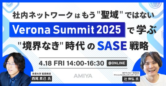 サイバーセキュリティサービスを提供する株式会社網屋(東京都中央区 / 東証グロース:4258 / 以下、網屋)は、ネットワークセキュリティの最新トレンドと、実践的な導入・運用戦略を学ぶオンラインイベント「Verona Summit 2025」を2025年4月18日(金)に開催します。