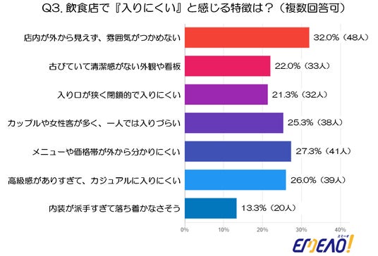 最も多かったのは「店内が外から見えず、雰囲気がつかめない」(32.0%・48人)で、