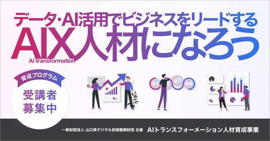 AI活用スキルとビジネス的ノウハウを持ち合わせ、AIを中心とした最新テクノロジーとビジネスを結びつけて新たな価値を創造できる人材を「AIトランスフォーメーション人材」と位置づけ、山口県内におけるAIXの機運を醸成するとともに、実際にAIトランスフォーメーションを企画・実行できるレベルまで県内の人材を育成することが本プロジェクトの大きな目的です。