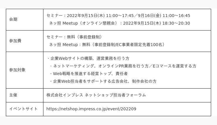 ●「ネットショップ担当者フォーラム 2022夏」申込はこちらから