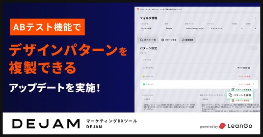 ABテストのデザインパターンを複製できるアップデート | フルファネルマーケティング支援ツール DEJAMを運営するLeanGo