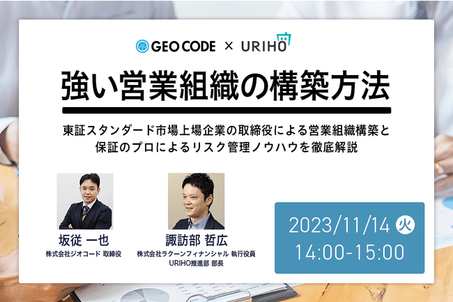 ラクーンフィナンシャルとの共催セミナー「強い営業組織の構築方法」にジオコード取締役の坂従が講師登壇(11月14日 14時~)